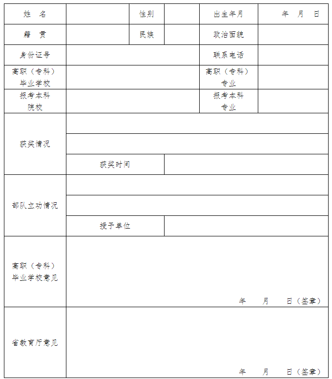 2021年湖南專(zhuān)升本免試推薦申請(qǐng)表