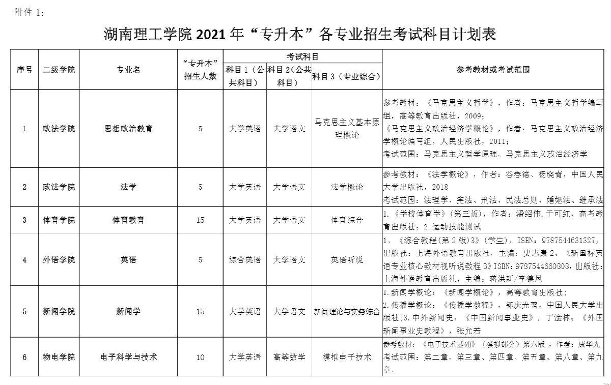 湖南理工學院專升本往年考試科目!