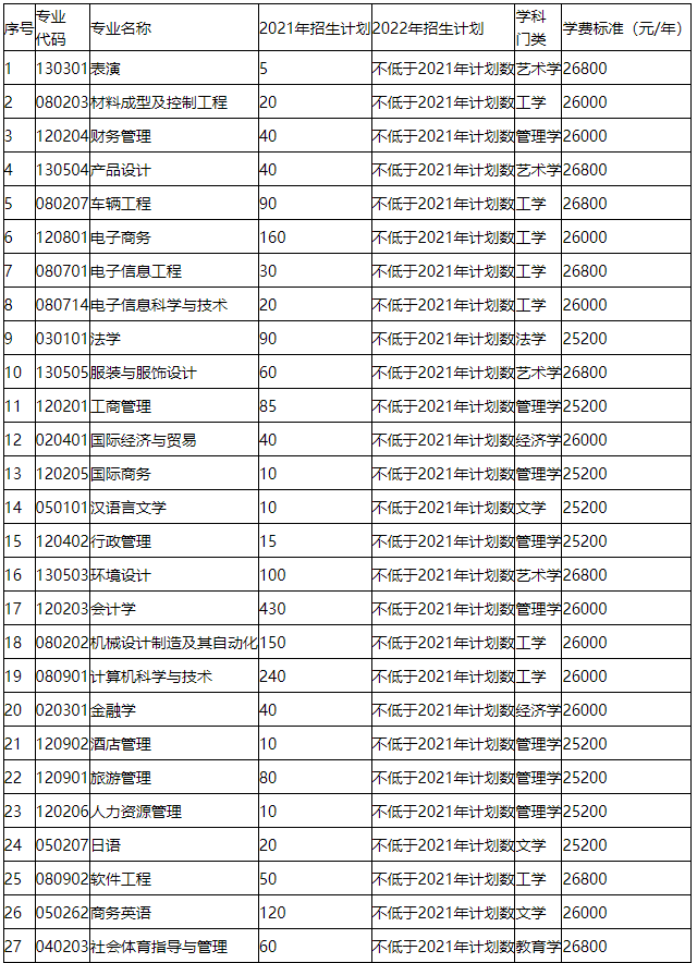 通過以上表格可以看出,該院校的2022年專升本招生專業共計45個,較2021年新增了自動化和朝鮮話專業。招生人數不少于2420人。各專業的專升本學費在2520元/年-26800元/年。