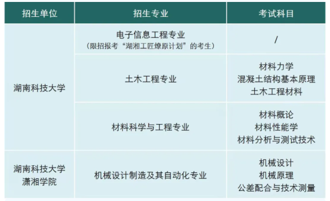 【導讀】2022年湖南科技大學專升本招生簡章發布,公布了2022年湖南科技大學專升本專業,包含湖湘工匠燎原計劃,共有三個招生專業。湖南科技大學有一個招生專業。